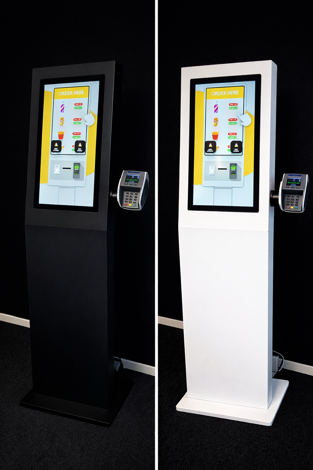 Naast functionaliteit zorgt de kiosk voor een moderne en professionele uitstraling van je zaak. Het strakke ontwerp is verkrijgbaar in zwart en wit en past moeiteloos in elk interieur. De bediening is intuïtief, waardoor zowel jonge als oudere klanten er eenvoudig mee kunnen werken.